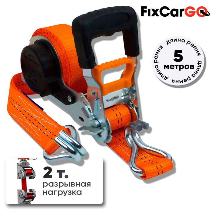 Самозатягивающийся ремень крепления груза 35 мм, 5 м, с двойными крюками